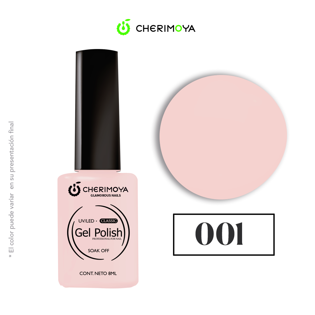 Esmalte permanente Cherimoya 8ml tono 001 traslucido ideal para una francesa natural.