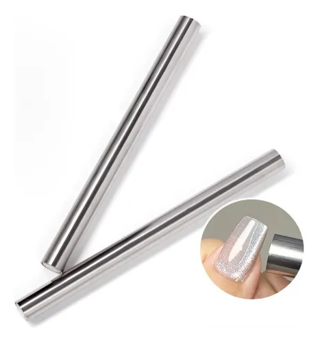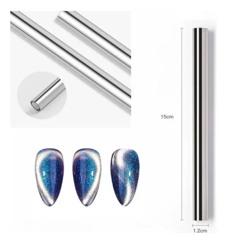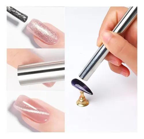 Ideal para realizar diseños decorativos, con productos que contienen pigmentos magnéticos que se activan al contacto con un imán que, al pasarlo de forma vertical o diagonal sobre la uña, provoca el toque deseado.