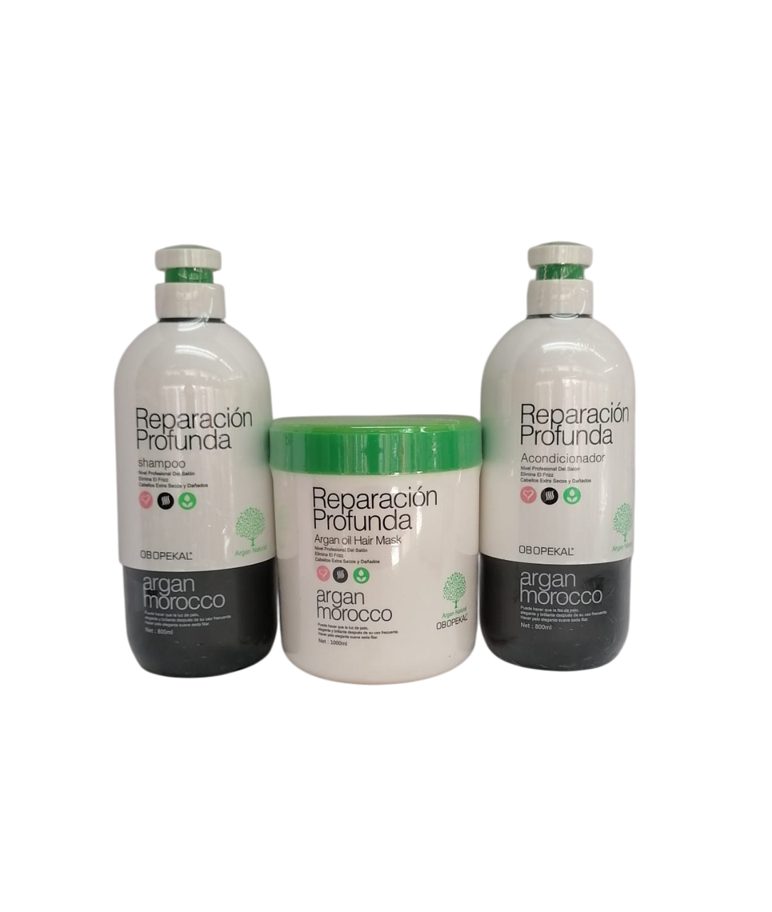Kit Shampoo, Acondicionador y Crema Reparación Profunda Argán Morocco Obopekal